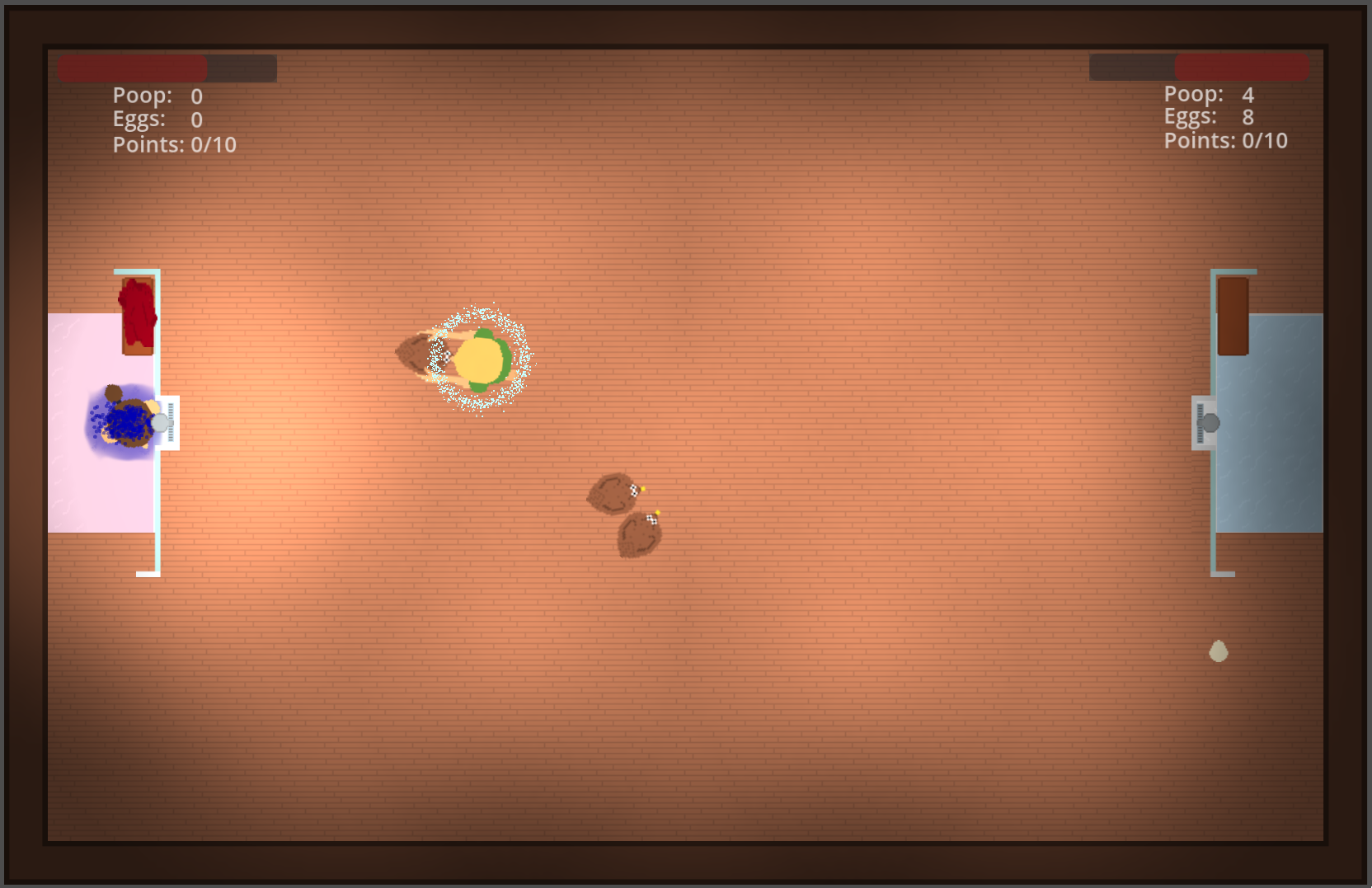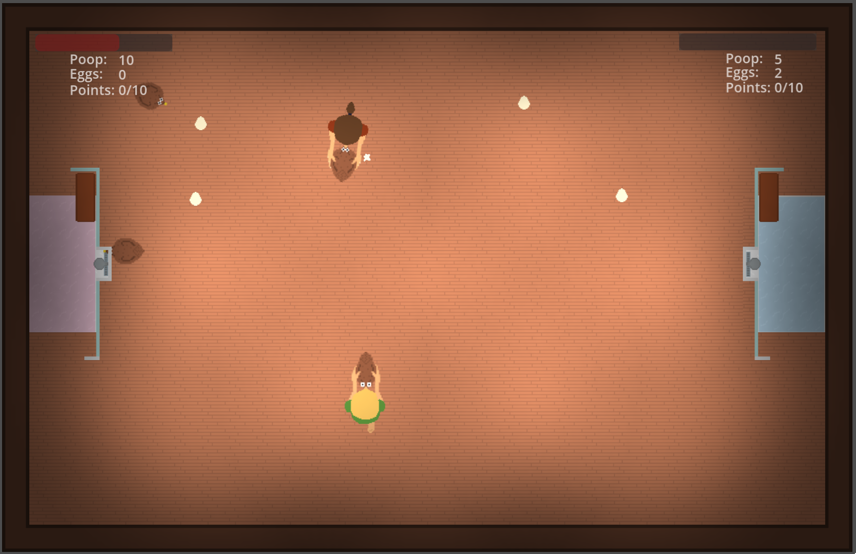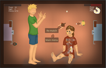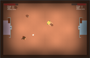 Chick Fight is a local 2-player game, where the goal is to get the other player as dirty as possible. Catch chikens and squeeze them to shoot poop.